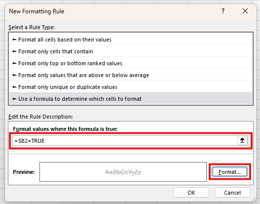 • If the formatting does not apply, check that the conditional formatting formula points to the correct checkbox column.